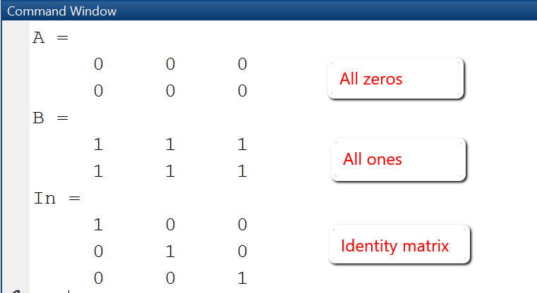 - format compact – Zeigt den Inhalt des Kommandofensters kompakt an, mit weniger Leerzeilen. Mit format long werden alle Kommazahlen mit doppelter Genauigkeit (d.h. mit mehr Nachkommastellen) angezeigt.