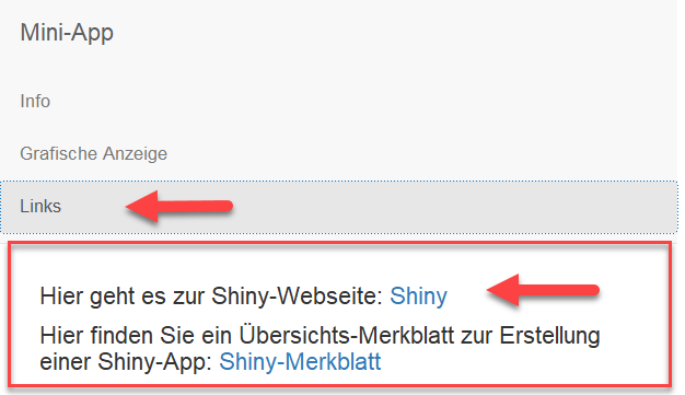 In der Mini-App werden mittels des a-Tags Links gesetzt. Damit der Link vom Layout zum restlichen Text passt, wird die paste0()-Tag